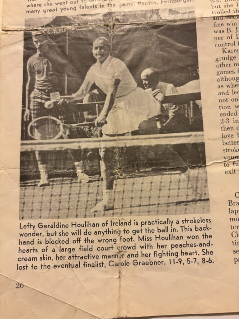 Those who watched her — and those who had to play her — remember a relentless will to win and a dedication that set the bar for everyone around her. Her era demanded toughness, self-belief and a willingness to take on the best, and Barniville did exactly that, competing against leading names of the time, including Billie Jean King. A notable highlight of her international career was a win over former Wimbledon champion Virginia Wade in both singles and doubles, the latter alongside Eleanor O’Neill.