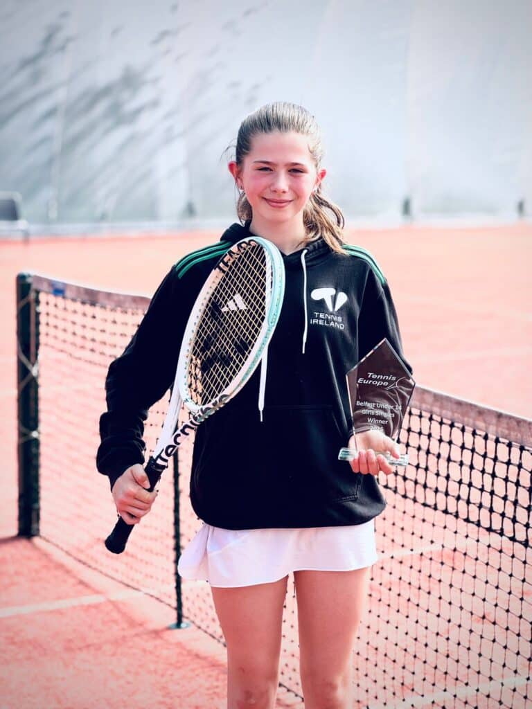 Aryia Pringle Quinn claimed the girls singles title at the Tennis Europe event hosted by Belfast Boat Club. Having reached the final the previous week, Aryia returned in convincing fashion to take the win — a fantastic result.
